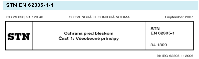V STN EN 62305-2 je uvedené, ako možno zistiť požadovanú triedu ochrany pred bleskom na základe výpočtu predpokladaného rizika a predpokladaných škôd a strát. V STN EN 62305-1 sú udané parametre bleskového prúdu, ktoré sa používajú pri dimenzovaní ochrany pred bleskom podľa zodpovedajúcej triedy ochrany pred bleskom.