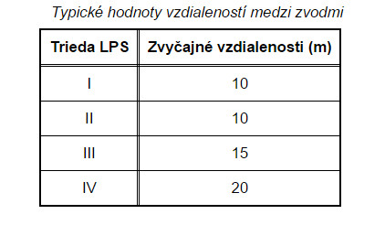 Zvody je nevyhnutné umiestniť tak, aby spájali miesto zásahu so zemou viacerými paralelnými cestami, ktorých dĺžka musí byť čo najkratšia. Pri izolovanom LPS sa na každú konštrukciu zachytávacej sústavy musí použiť jeden zvod. Pri neizolovanom LPS sa musia použiť minimálne 2 zvody. Zvody sa majú umiestniť pravidelne po obvode chránenej stavby. Typické hodnoty vzdialeností medzi zvodmi sú uvedené v tabulke. Ak je možné, jeden zvod sa má umiestniť na každý nechránený roh stavby.