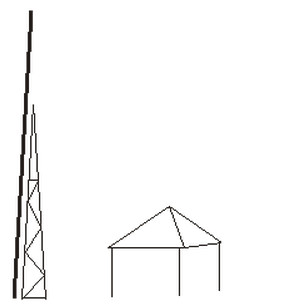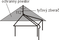 Ochranný priestor zvislej zachytávacej tyče má tvar pravouhlého kužeľa s vrcholom V umiestneným v osi zachytávacej tyče.