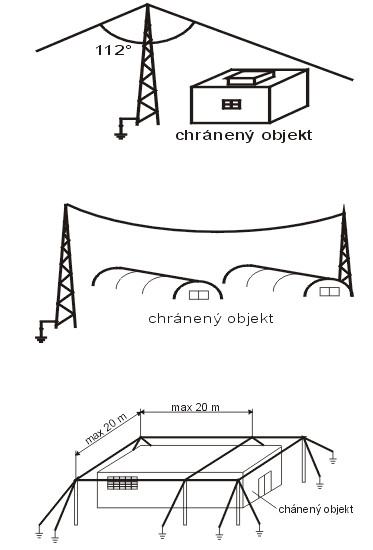 - metódy ochranného uhla, ktorá je vhodná na jednoduché tvary budov, ale je ohraničená výškou zachytávacej sústavy. Fyzikálna podstata ochranného uhla spočíva v tom, že blesk blížiaci sa k chránenej budove si „vyberá miesto úderu“ až na posledných 30 až 50 metroch.