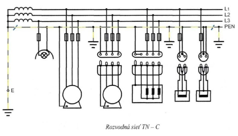 Príklad označenia striedavej trojfázovej siete TN - C:
