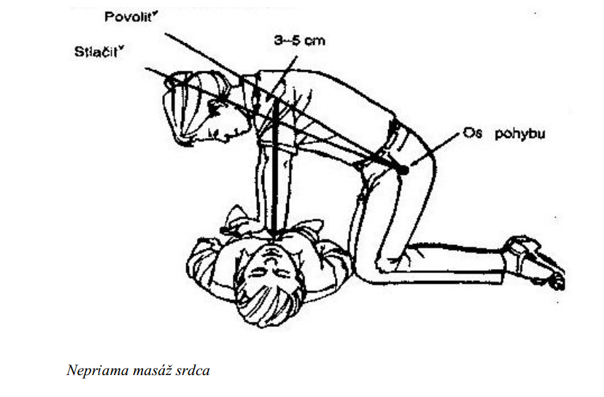 kosti), ruky nechá na hrudníku, uvoľní tlak, nemení polohu. Tlak strieda uvoľnenie