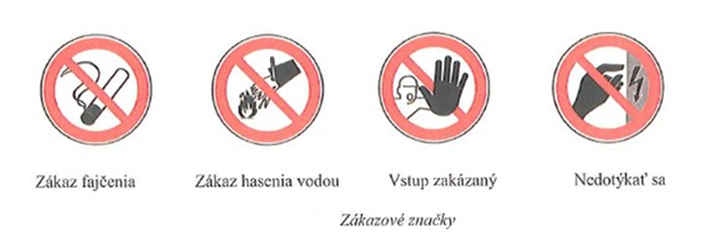 Ide o bezpečnostné značky zakazujúce správanie, ktoré by mohlo viesť k vzniku nebezpečenstva. Základom ich vyhotovenia je biela farba podkladu, kruhový tvar v červenom orámovaní a čierne symboly. Oznamujú zákaz vyjadrujúci neprístupnosť alebo nevyhnutnosť okamžitého ukončenia konania, ktoré je za daných okolností nebezpečné (požiar, výbuch, úraz, a pod.). Zákazové značky majú byť umiestňované všade tam, kde by zákaz určitej činnosti pomohol zabrániť vzniku nehody alebo chybnému pracovnému úkonu. Príklady zákazových značiek sú znázornené na obrázku.